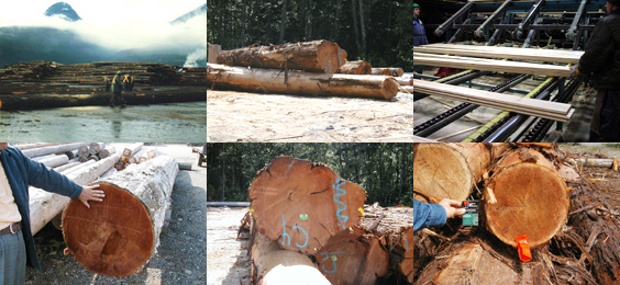 平屋ライフ.comを運営するケーズファクトリーでは、木材の安定供給を目指し開業当初から「乾燥原木確保」プログラムをカナダにて実施し、主に翌年計画されるプロジェクト用にストックをしています。皮を剥いて原木のまま6ヵ月以上経過させた木材はゆっくりと自然乾燥されてとてもいい状態となります。そのようにして供給されるティンバーフレーム用ダグラスファーやウェスタンレッドシダー、イエローシダー材はどれも大変ご好評を得ています。